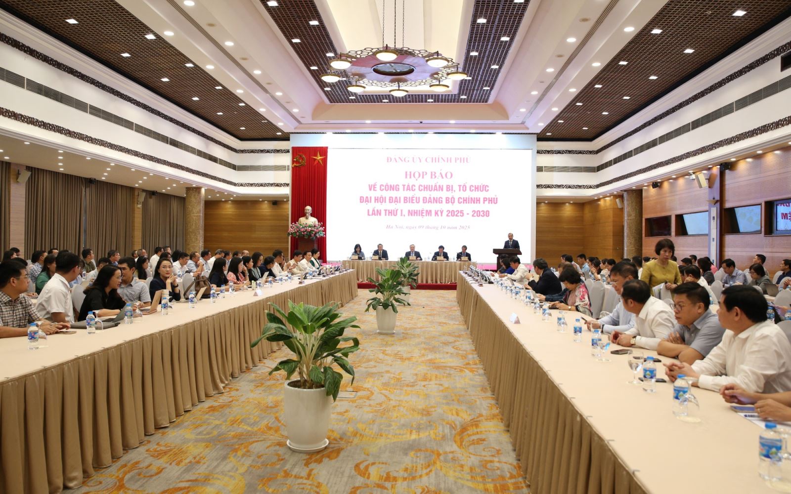 Sáng 9-10, tại Hà Nội, Đảng ủy Chính phủ tổ chức Họp báo về công tác chuẩn bị, tổ chức Đại hội Đại biểu Đảng Bộ Chính phủ lần thứ I, nhiệm kỳ 2025-2030. Ủy viên Bộ Chính trị, Phó Bí thư Thường trực Đảng ủy Chính phủ, Phó Thủ tướng Thường trực Chính phủ Nguyễn Hòa Bình chủ trì họp báo.