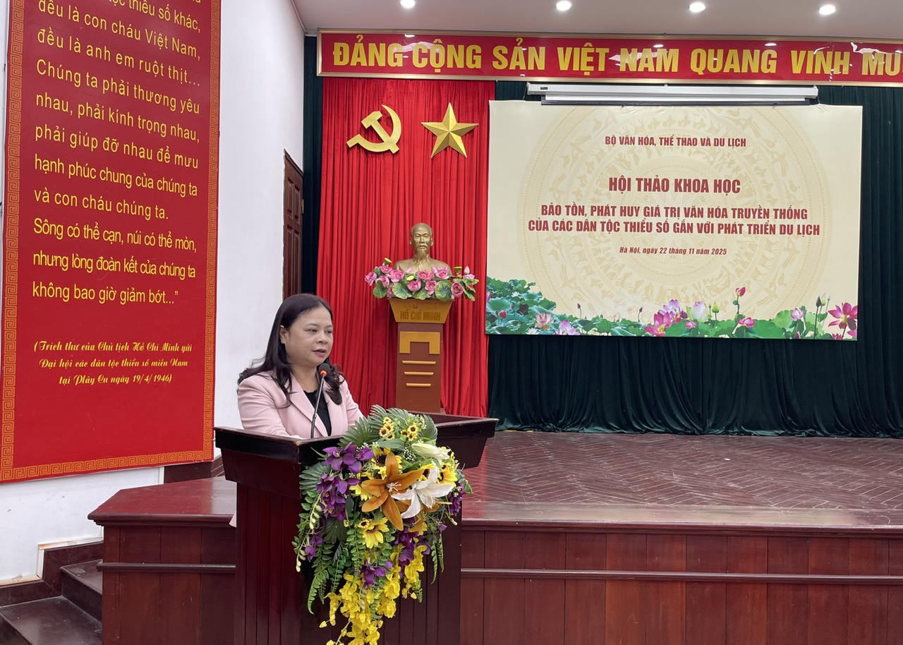Phát biểu tổng kết Hội thảo, Phó Cục trưởng Cục Văn hóa du lịch các dân tộc Việt Nam Nguyễn Thị Hải Nhung cho biết, sau một buổi sáng làm việc nghiêm túc, sôi nổi và hiệu quả, Hội thảo khoa học về "Bảo tồn, phát huy văn hóa truyền thống các dân tộc thiểu số gắn với phát triển du lịch" đã hoàn thành toàn bộ các nội dung chương trình đề ra và đạt được nhiều kết quả quan trọng, có ý nghĩa sâu sắc cả về lý luận và thực tiễn.