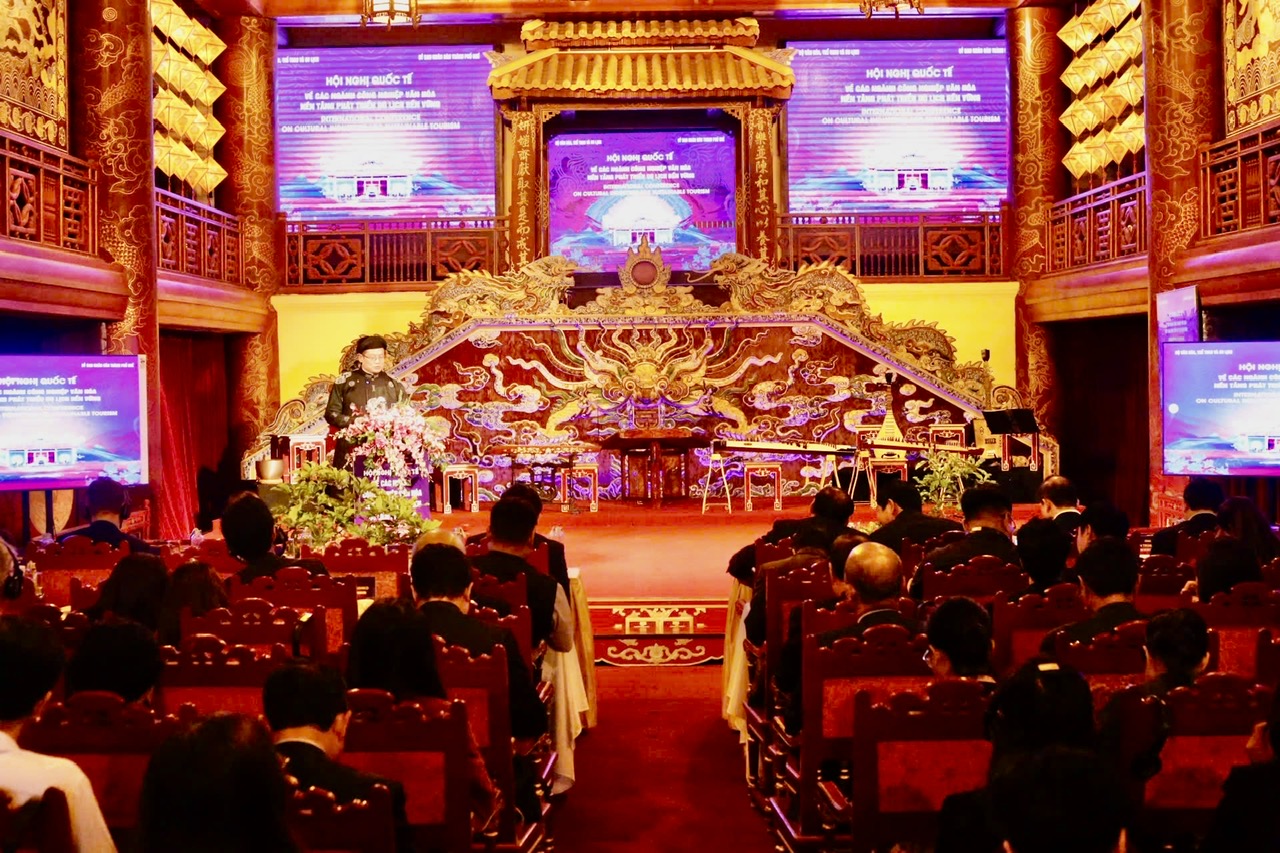 Theo Bộ trưởng, câu chuyện phát triển du lịch phải được đặt trên nền tảng văn hóa, quan điểm này đã được nhiều đại biểu nhấn mạnh tại Hội nghị. Việc Ban Tổ chức lựa chọn Nhà hát Duyệt Thị Đường làm địa điểm tổ chức cũng không phải là sự ngẫu nhiên. Đây là một trong những nhà hát cổ nhất của Việt Nam còn tồn tại đến nay, nằm trong hệ thống các hạng mục di sản của Cố đô Huế được bảo tồn và lưu giữ. Chính tại không gian này, những người làm công tác tổ chức đã gửi gắm thêm một thông điệp: hãy bắt đầu từ văn hóa, từ di tích và di sản; giữ gìn di sản, đồng thời “thổi hồn” cho di sản bằng sự sáng tạo.