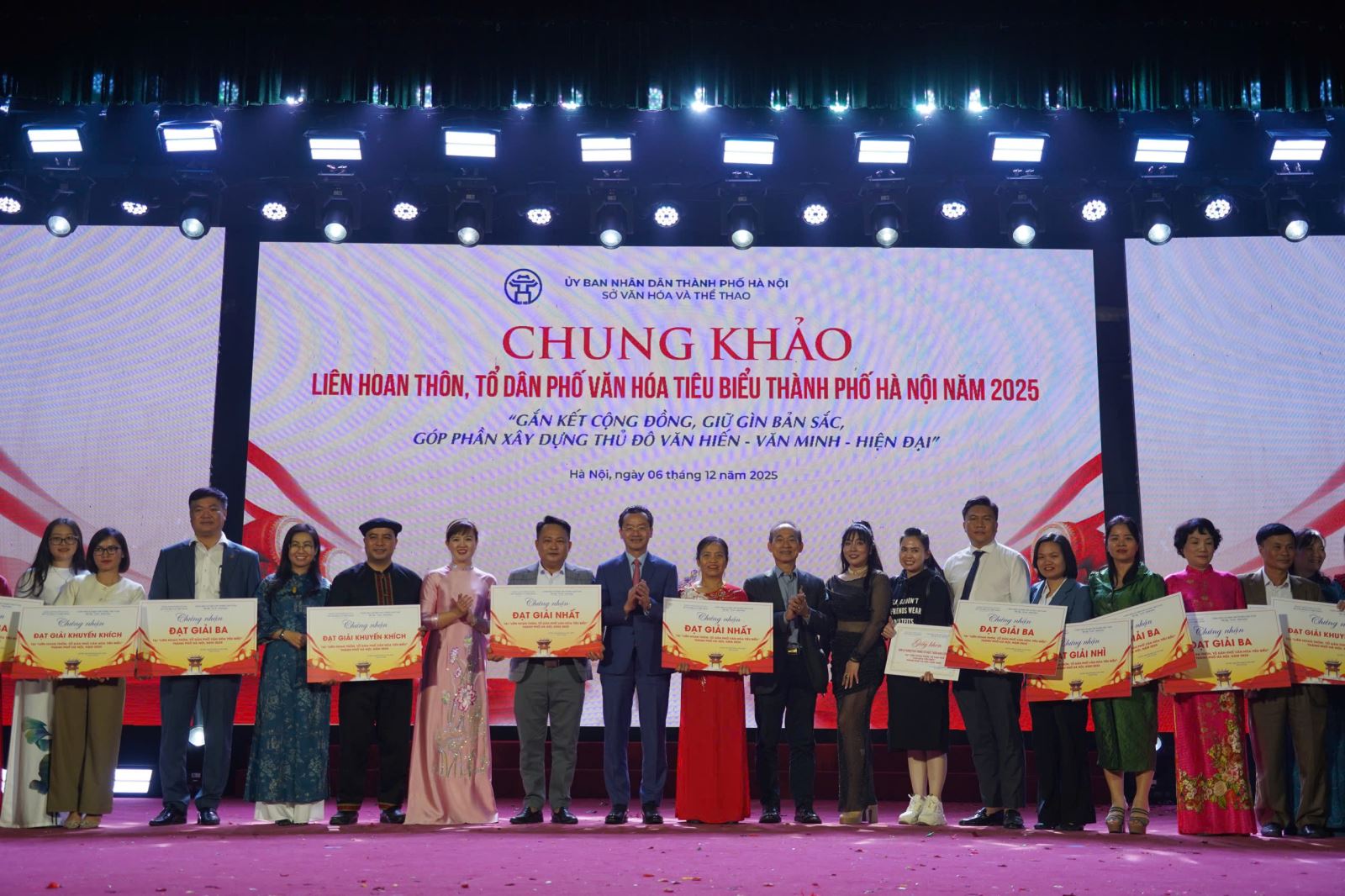 Ngày 6-12, tại Trung tâm Văn hóa thành phố (số 7 Phùng Hưng, phường Hà Đông, Hà Nội), Sở VHTT Hà Nội đã tổ chức Chung khảo Liên hoan “Thôn, tổ dân phố văn hóa tiêu biểu” thành phố Hà Nội năm 2025. Liên hoan được tổ chức thành 2 vòng: Sơ khảo và Chung khảo.