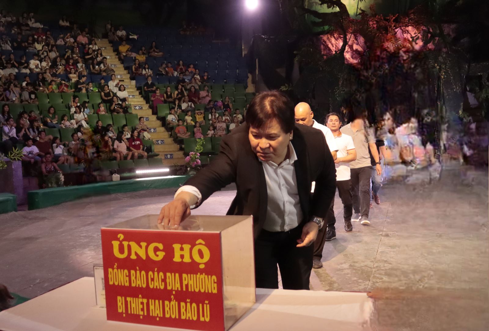 Phát biểu tại đêm diễn, NSND Tống Toàn Thắng - Giám đốc Liên đoàn Xiếc Việt Nam xúc động chia sẻ: “Đồng bào chúng ta đang chịu thiệt hại nặng nề sau những trận bão lũ liên tiếp xảy ra vừa qua. Liên đoàn Xiếc Việt Nam luôn mong muốn được đồng hành, được đóng góp một phần nhỏ bé sức lao động và tình yêu nghề của mình, để lan tỏa tinh thần tương thân tương ái, hướng về đồng bào đang gặp khó khăn”. Việc chung tay ủng hộ đồng bào đã trở thành hoạt động thường niên của Liên đoàn, thể hiện tấm lòng nhân ái của cả tập thể nghệ sĩ. Ngoài việc biểu diễn tại rạp, các nghệ sĩ xiếc cũng thường xuyên có chuyến lưu diễn tại vùng sâu vùng xa, mong đưa nghệ thuật xiếc đến gần hơn tới đông đảo khán giả, nhất là những em nhỏ đang chịu nhiều thiệt thòi.
