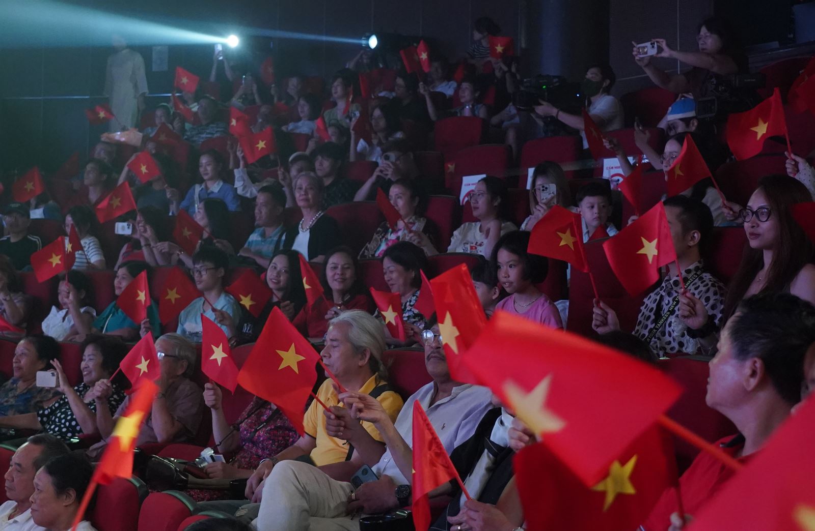 Từng lá cờ Tổ quốc phấp phới trong tay khán giả đã tạo nên một bức tranh đẹp, truyền tải tinh thần yêu nước và đoàn kết của cả dân tộc