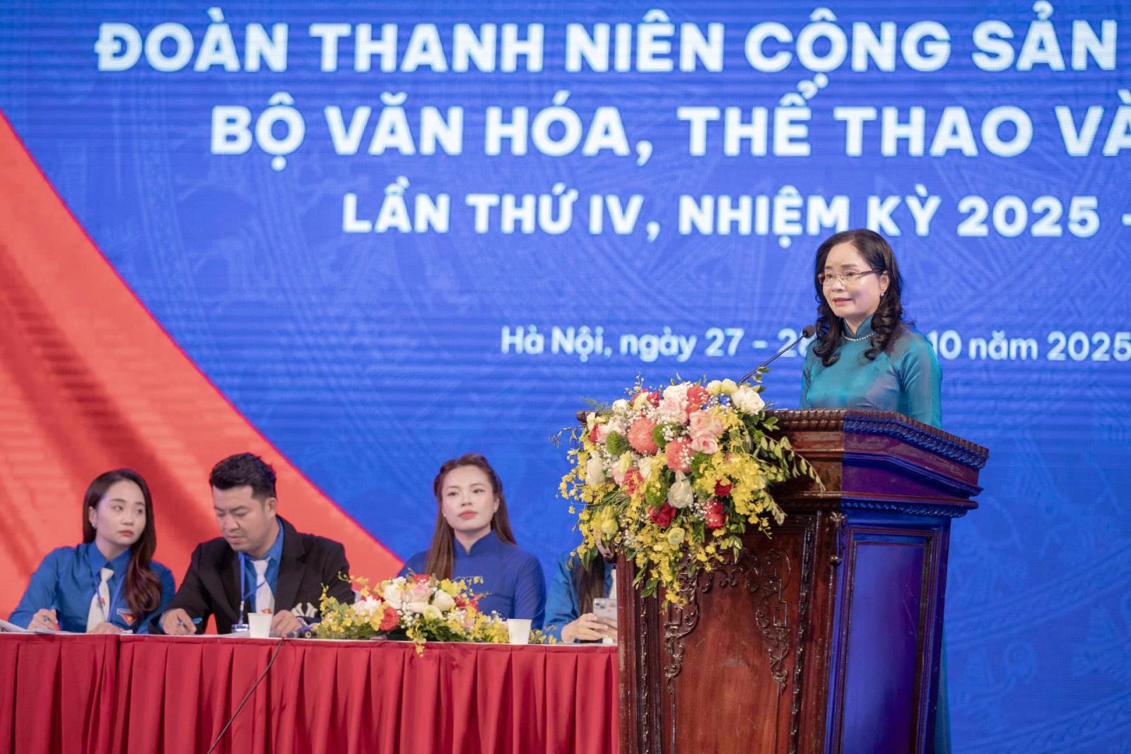 Phát biểu chỉ đạo tại Đại hội, Thứ trưởng Trịnh Thị Thủy nhấn mạnh rằng Đại hội là sự kiện chính trị có ý nghĩa quan trọng, là ngày hội lớn của tuổi trẻ Bộ VHTTDL. Trong nhiệm kỳ vừa qua, công tác Đoàn và phong trào thanh niên của Bộ đã có nhiều đổi mới, sáng tạo và gắn liền với nhiệm vụ chính trị của Bộ. Nổi bật là các hoạt động Đoàn gắn với chuyên môn, qua đó nhiều gương mặt trẻ tiên phong trong đổi mới, sáng tạo đã gặt hái thành công và tỏa sáng trong các lĩnh vực: nghệ thuật biểu diễn, thi đấu thể thao và nhiều lĩnh vực khác. Thứ trưởng nhấn mạnh: giai đoạn 2025-2030, mở ra một thời kỳ phát triển mới của đất nước nói chung, của ngành VHTTDL nói riêng. Đây là giai đoạn bứt phá để hiện thực hóa khát vọng Việt Nam hùng cường, phát triển toàn diện về con người, văn hóa và bản sắc dân tộc.