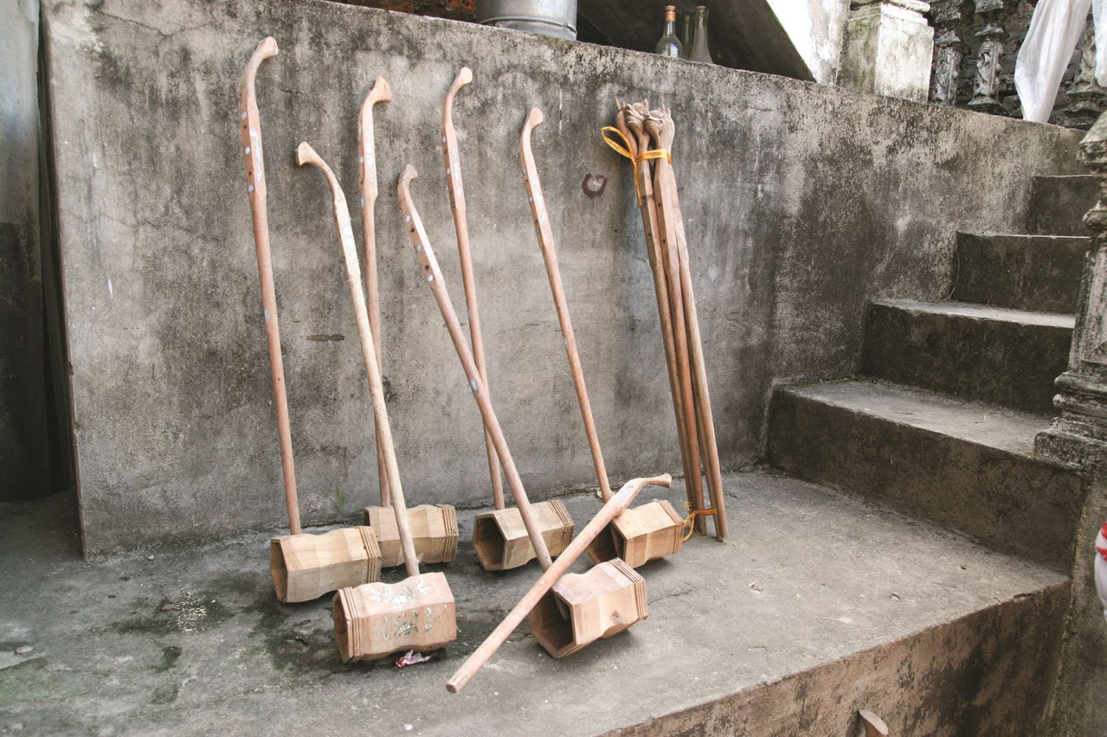 Những cây đàn Nhị đang trong quá trình hoàn thiện ở làng nghề Đào Xá