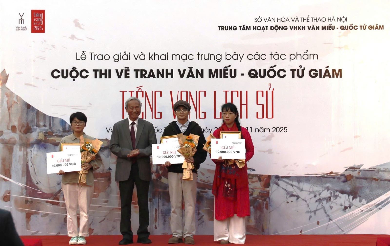Chào mừng Ngày Di sản Văn hóa Việt Nam (23-11), chiều 23-11-2025, tại di tích Quốc gia đặc biệt Văn Miếu - Quốc Tử Giám (Hà Nội) đã diễn ra Lễ Trao giải và Khai mạc trưng bày tác phẩm Cuộc thi “Tiếng vang lịch sử” năm 2025 do Trung tâm Hoạt động VHKH Văn Miếu - Quốc Tử Giám phối hợp cùng Câu lạc bộ Họa sĩ màu nước Hà Nội, Mây thênh thang đồng tổ chức.