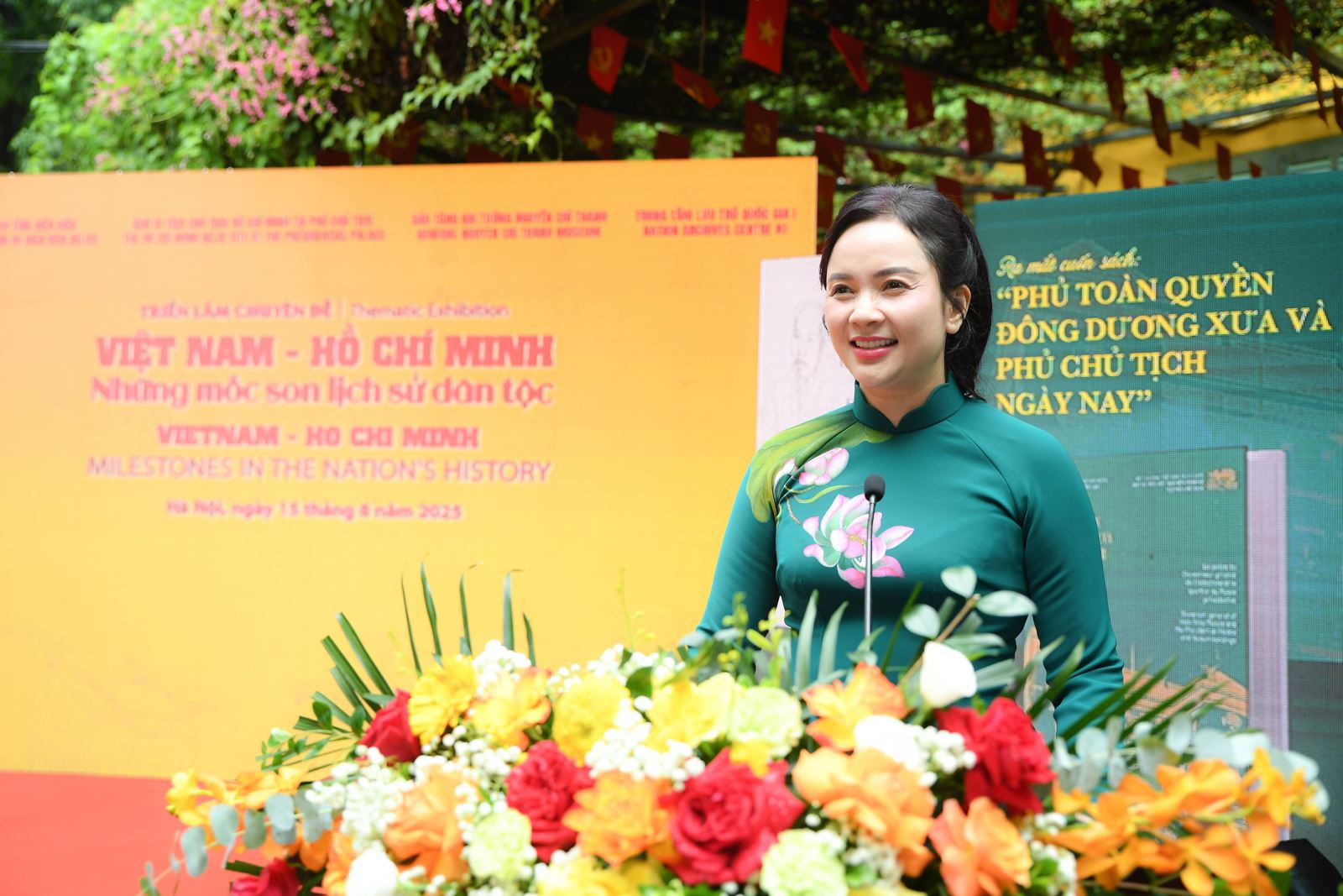 Bà Lê Thị Phượng - Giám đốc Khu Di tích Chủ tịch Hồ Chí Minh tại Phủ Chủ tịch phát biểu tại lễ khai mạc