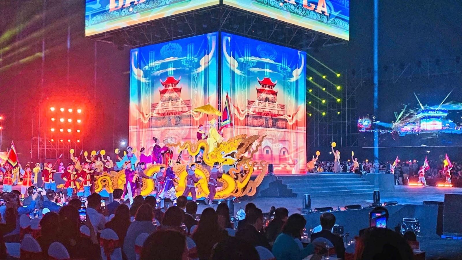 Ngay từ những phút đầu, không gian Hoàng thành như được “đánh thức” bằng âm nhạc, ánh sáng và sắc màu văn hóa. Trên sân khấu được thiết kế công phu với cảm hứng từ biểu tượng rồng Thăng Long, gần 1.000 nghệ sĩ, diễn viên chuyên nghiệp và bán chuyên đã cùng hòa mình vào một đại tiệc nghệ thuật kết hợp giữa truyền thống và hiện đại. Lễ khai mạc được chia thành ba chương lớn: "Di sản -Kết nối - Thời đại" thể hiện hành trình từ cội nguồn đến hiện tại, nơi tinh hoa văn hóa Việt Nam được kế thừa, giao thoa và tiếp nối bằng tinh thần sáng tạo không ngừng.