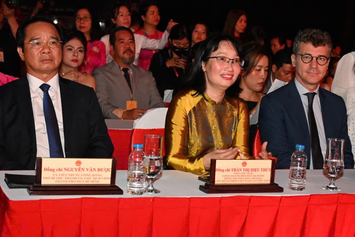 Ông Nguyễn Văn Được - Chủ tịch UBND TP.HCM, bà Trần Thị Diệu Thúy- Phó Chủ tịch UBND TP.HCM và ông Jonathan Baker- Trưởng Đại diện Văn phòng UNESCO tại Việt Nam tại Lễ khai mạc