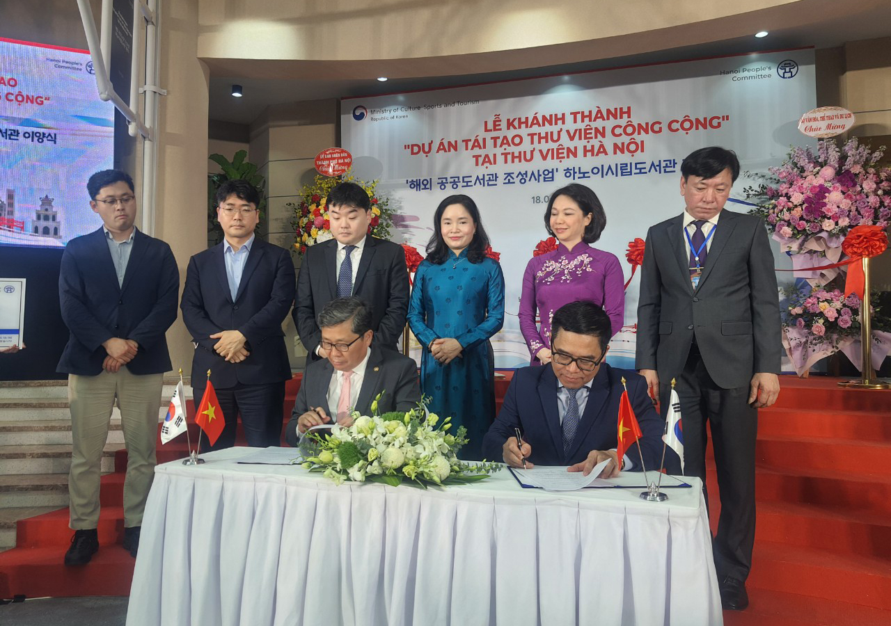 “Dự án tái tạo Thư viện công cộng giai đoạn 2021-2022” do Bộ VHTTDL Hàn Quốc tài trợ, với mục tiêu hỗ trợ nâng cao sử dụng tiện ích của Thư viện Thành phố Hà Nội. Dự án hướng tới xây dựng không gian văn hóa, thưởng thức văn hóa và đọc sách; hỗ trợ việc trao đổi, giao lưu văn hóa; truyền tải thông tin, đời sống học thuật, nhằm giúp nâng cao chất lượng đời sống tinh thần của các tầng lớp nhân dân Thủ đô.