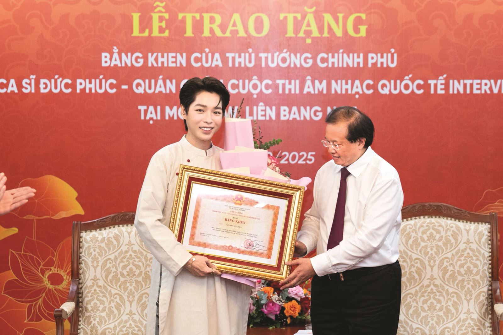 Nam ca sĩ nhận Bằng khen của Thủ tướng Chính phủ cho danh hiệu Quán quân Cuộc thi Âm nhạc quốc tế Intervision năm 2025