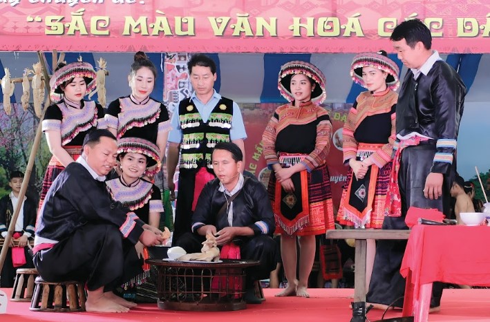 Ảnh trong bài: Các nghệ nhân, diễn viên quần chúng người Mông ở Nghệ An tái hiện Lễ cúng mừng năm mới của dân tộc mình trong Ngày hội Văn hóa các dân tộc Việt Nam tại tỉnh Quảng Trị (12/2024). Ảnh: Tuấn Minh