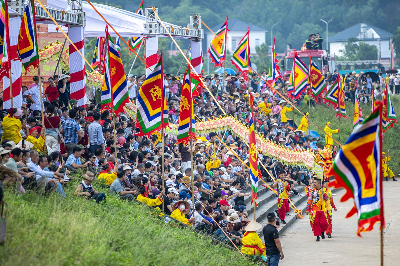 Đông đảo người dân và du khách theo dõi, thưởng thức diễn xướng hội quân trên sông Lục Đầu