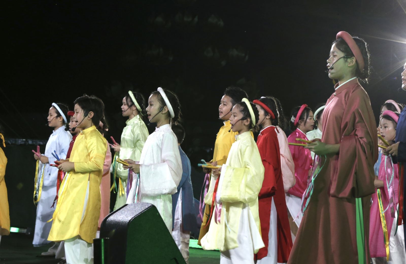 Phần trình diễn nhạc cụ và làn điệu dân ca của các thanh thiếu nhi CLB Ngôi sao nhỏ chào mừng thành công của Lễ hội