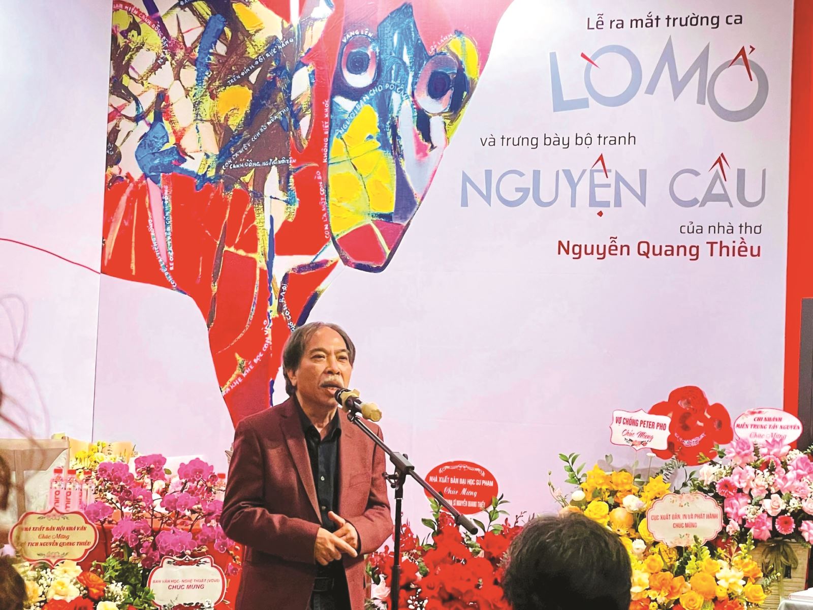 Nhà thơ Nguyễn Quang Thiều trong buổi ra mắt tập thơ Lò mổ