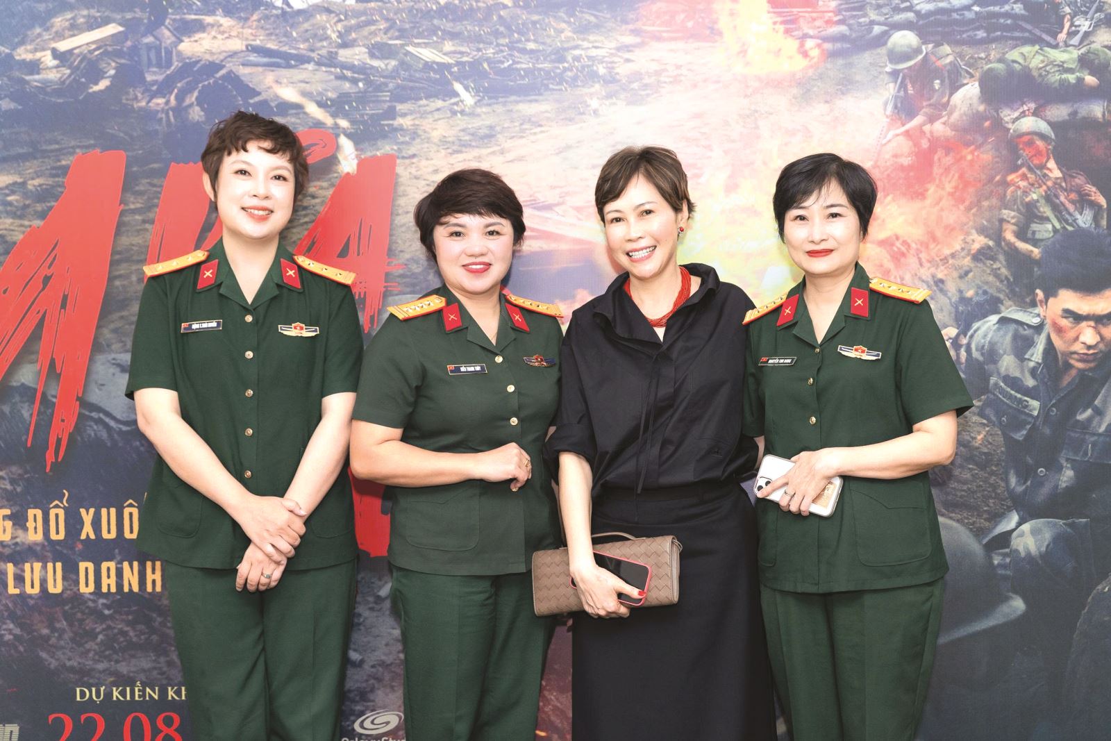 Ê kíp chính gồm toàn phụ nữ của Mưa đỏ: đạo diễn Đặng Thái Huyền, Giám đốc sản xuất Kiều Thanh Thúy, đại diện nhà phát hành Galaxy Đinh Thanh Hương, Giám đốc Điện ảnh Quân đội Nguyễn Thu Dung - Phó Trưởng ban Thường trực Ban Chỉ đạo sản xuất phim