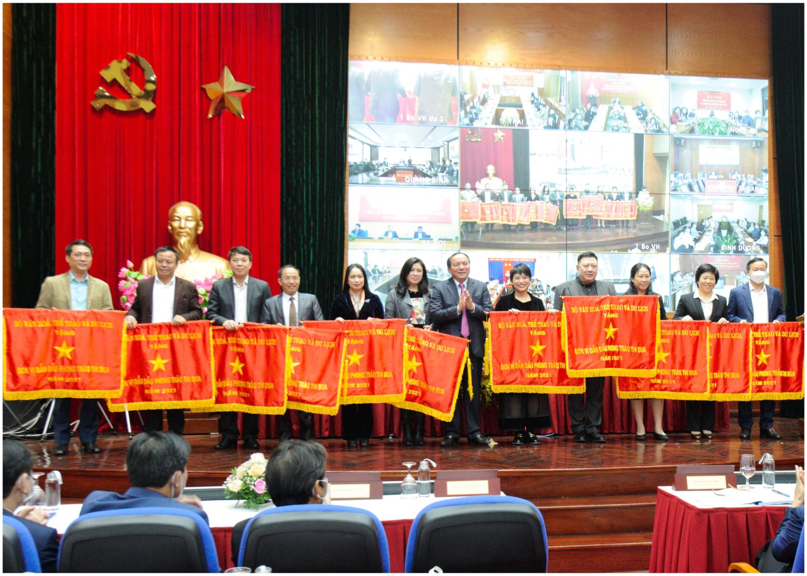 Bộ trưởng Nguyễn Văn Hùng trao Cờ thi đua của Bộ VHTTDL cho các đơn vị