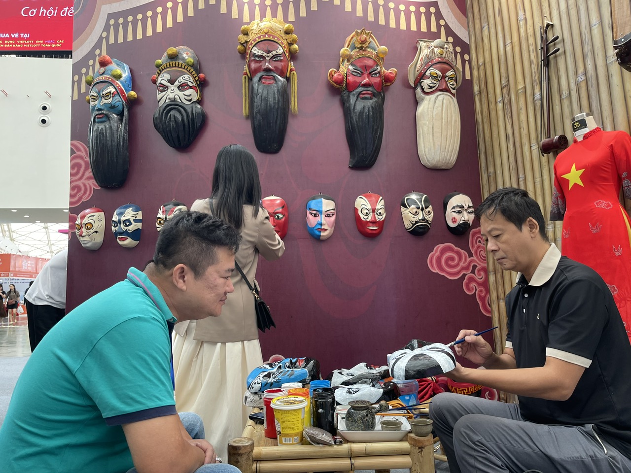 Trong không gian của phân khu Nghệ thuật biểu diễn, những chiếc mặt nạ được khắc họa thần thái nhân vật trong nghệ thuật Tuồng như chính - tà, trung - nịnh, dữ dội - khoan hòa… đã được hiện ra dưới đôi tay khéo léo của họa sĩ, NSƯT Nguyễn Hoàng Phong. Hình ảnh những chiếc mặt nạ độc đáo đó đã cuốn hút sự quan sát, tìm tòi của du khách và dừng lại để trò chuyện với họa sĩ.
