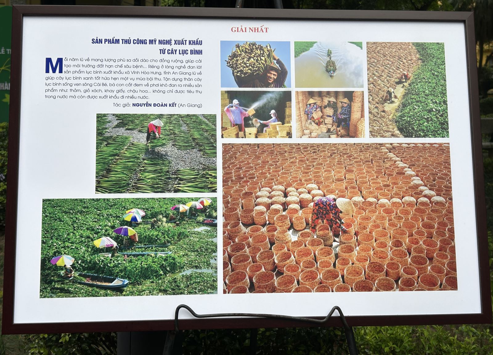 Giải Nhất là bộ ảnh Sản phẩm thủ công mỹ nghệ sản xuất từ cây lục bình của tác giả Nguyễn Đoàn Kết (An Giang) được đánh giá là hoàn chỉnh, có kết cấu chặt chẽ với mạch dẫn quy trình sản xuất từ đầu đến cuối. Bộ ảnh nêu bật sự sáng tạo của người dân, biến những cây giá trị thấp thành sản phẩm có giá trị để xuất khẩu, một hành động xanh, kết hợp kinh tế tuần hoàn khi tạo sinh kế cho người dân địa phương. Một mô hình bảo vệ môi trường bền vững.
