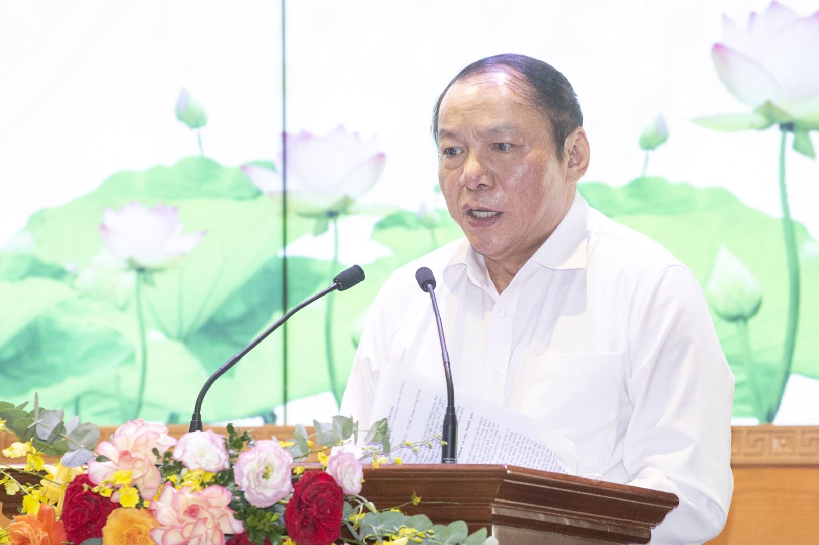 Bộ trưởng Bộ VHTTDL Nguyễn Văn Hùng báo cáo tại hội nghị - Ảnh: Tuấn Minh