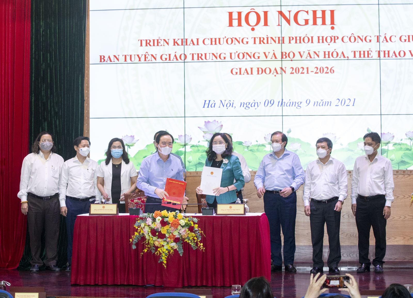 Ký kết Chương trình phối hợp giữa Ban Tuyên giáo Trung ương và Bộ VHTTDL giai đoạn 2021-2026 - Ảnh: Tuấn Minh
