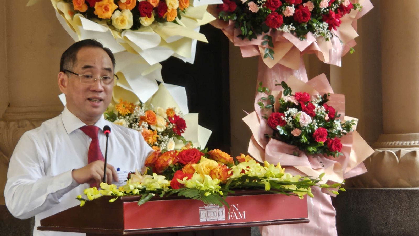 Giám đốc Bảo tàng Mỹ thuật Việt Nam Nguyễn Văn Minh phát biểu khai mạc Triển lãm - Ảnh: Mai Hương