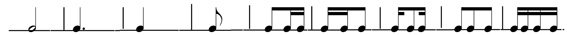 Nét đặc trưng nhất trong tất cả các bài là thường sử dụng chùm kép luyến giống nhau và sau chùm kép này là một chủ âm có trường độ ngân dài tự do. Âm hình này thường được sử dụng xuyên suốt trong các bài: