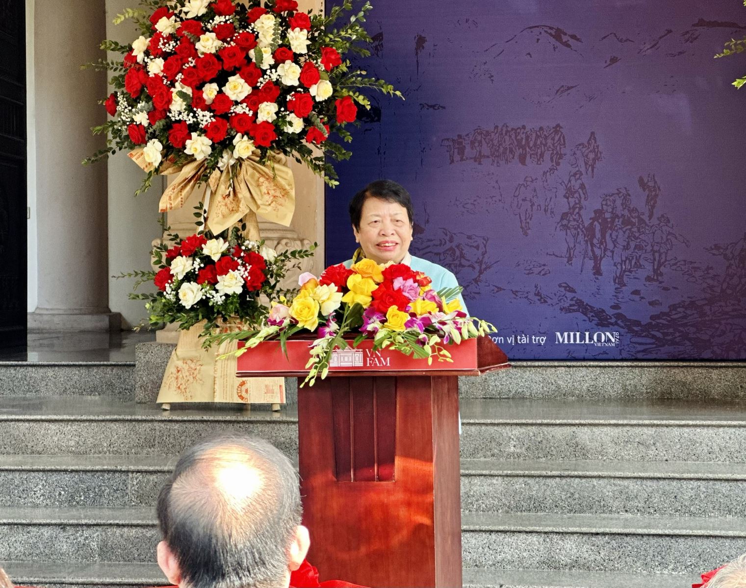 Bà Tô Thị Toàn - Con gái họa sĩ, liệt sĩ Tô Ngọc Vân thay mặt gia đình phát biểu tại buổi lễ
