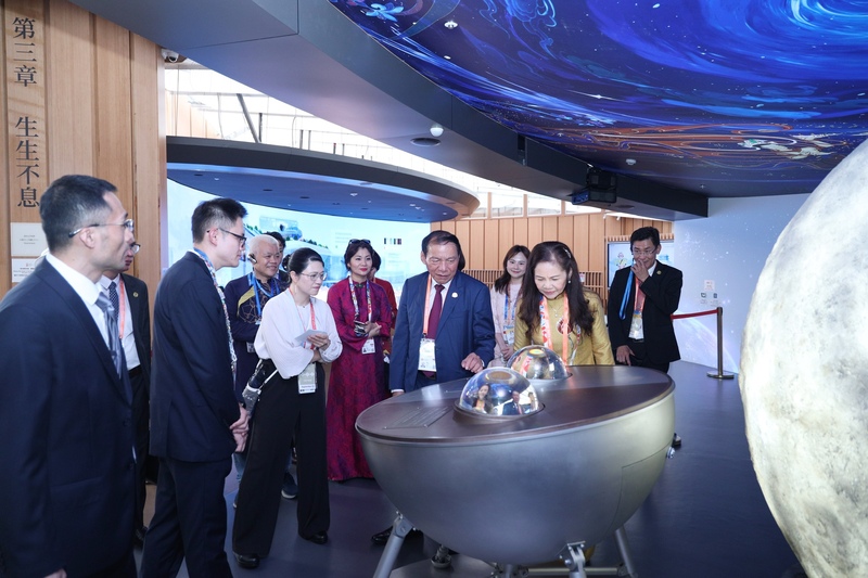 Tham quan Nhà triển lãm Trung Quốc, Bộ trưởng Nguyễn Văn Hùng đã đánh giá cao và dành nhiều lời khen về kiến trúc độc đáo và nội dung đa dạng của Nhà triển lãm nước láng giềng, từ văn hóa, lịch sử, con người, khoa học-công nghệ, đến tầm nhìn về đổi mới sáng tạo, phát triển bền vững gắn với chủ đề “Thiết kế xã hội tương lai cho cuộc sống của chúng ta” của EXPO 2025.