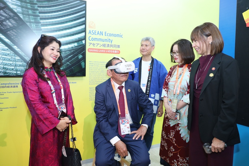 Bộ trưởng Nguyễn Văn Hùng trải nghiệm công nghệ kính thực tế ảo tại Nhà triển lãm ASEAN