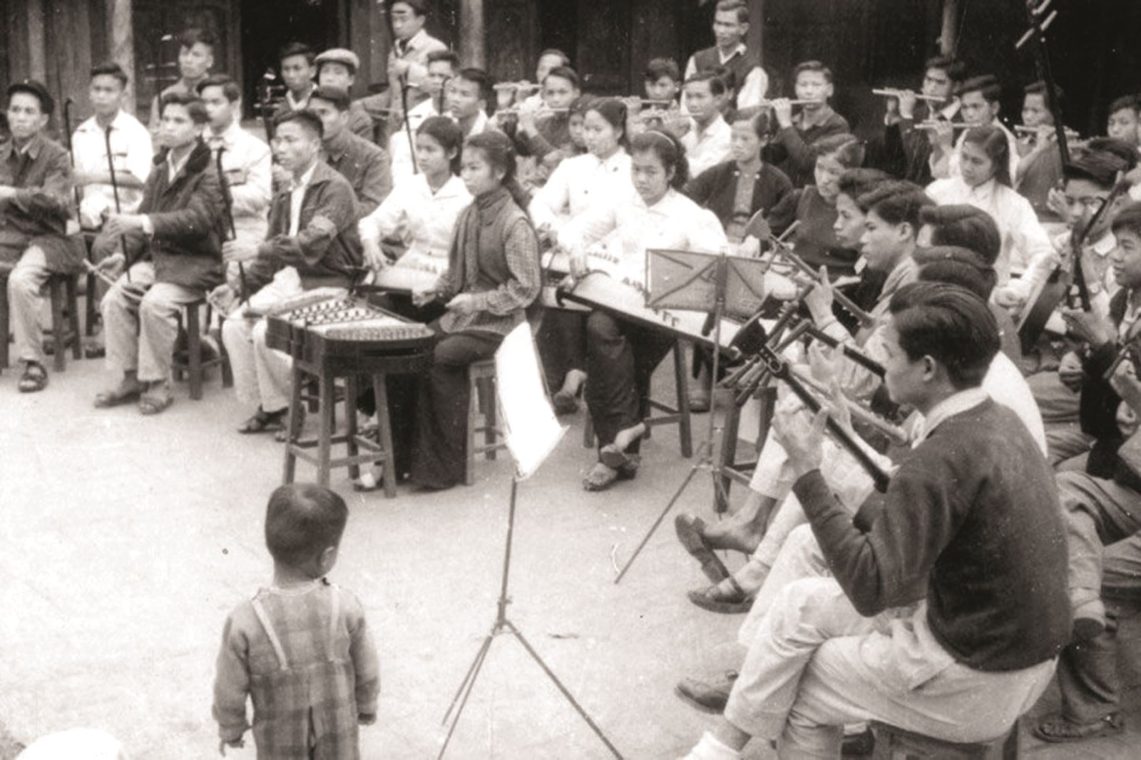 Các nhạc sĩ đang biểu diễn trong thời kỳ kháng chiến chống Pháp (ảnh tư liệu)