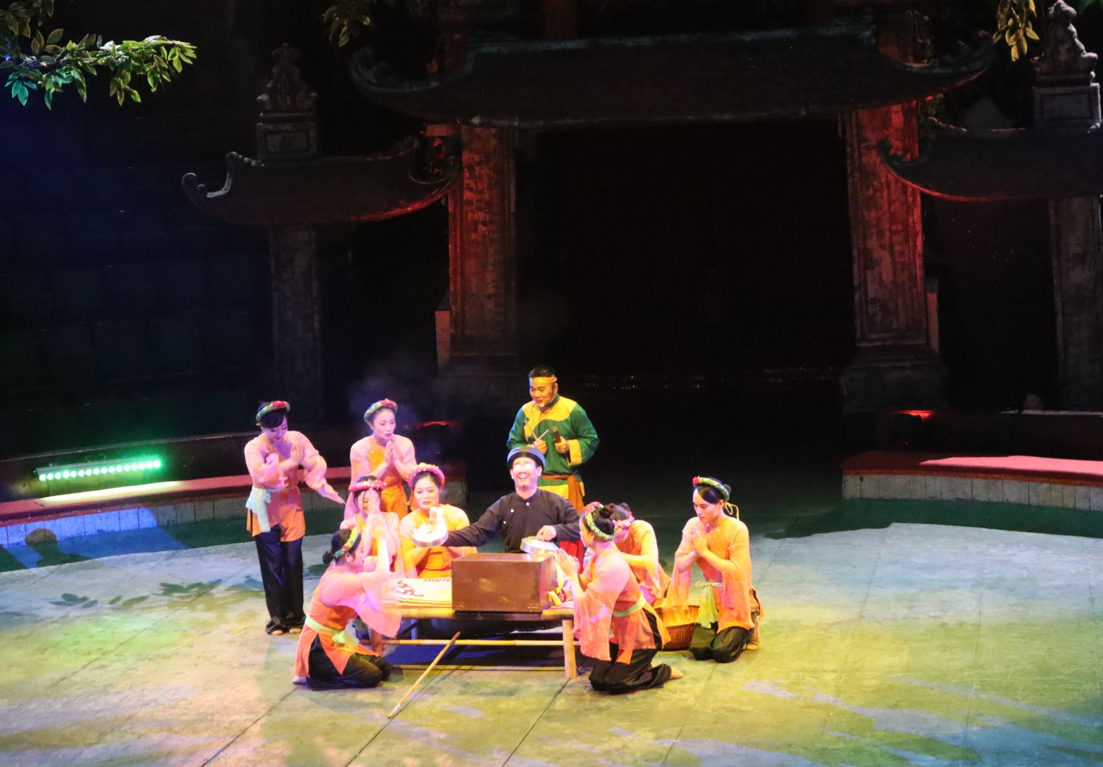 Mở màn là cảnh hội làng với các tiết mục: đế trụ trên đu, tung hứng lúa, múa mâm quả, xiếc lợn, ngỗng…