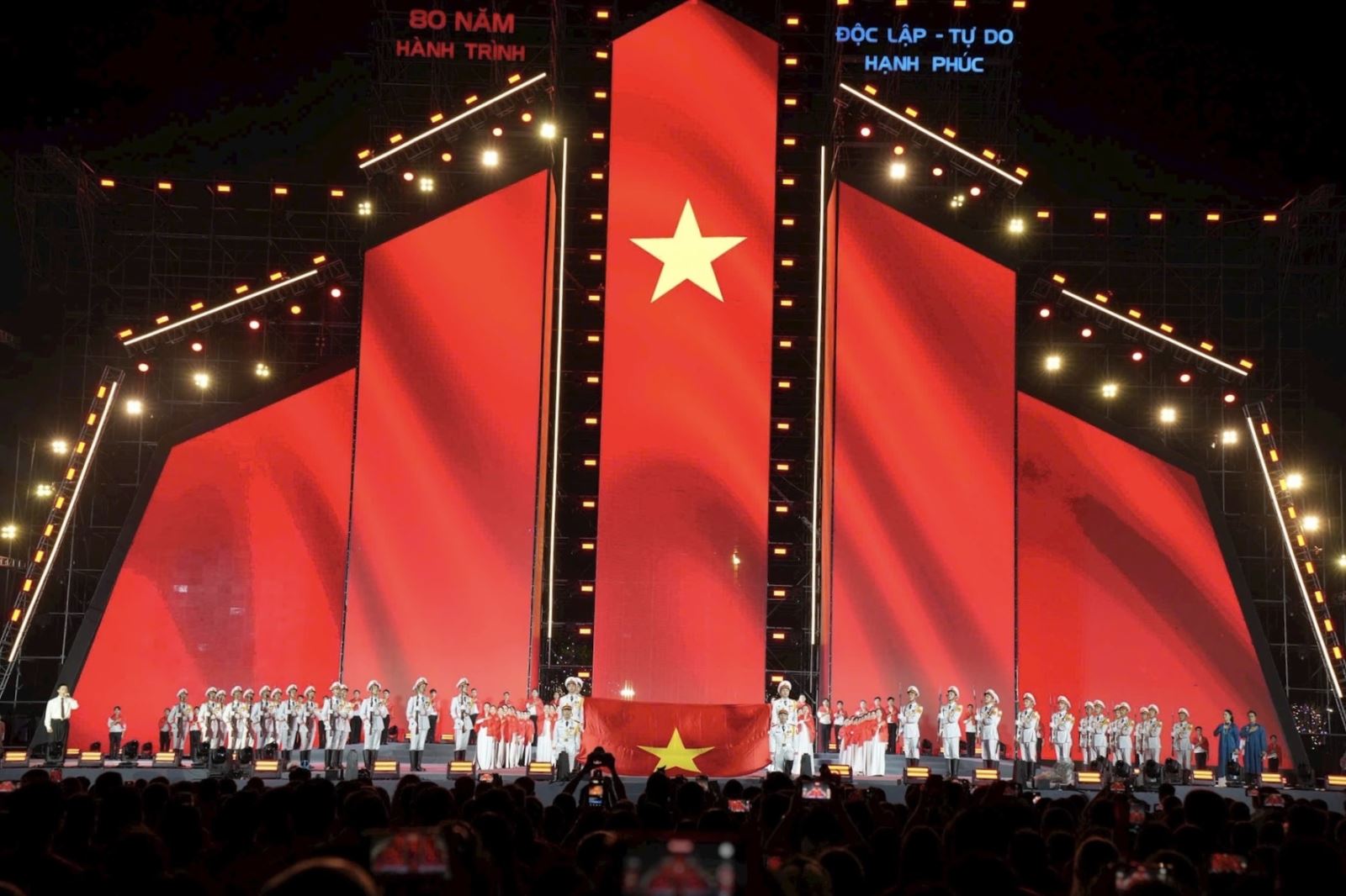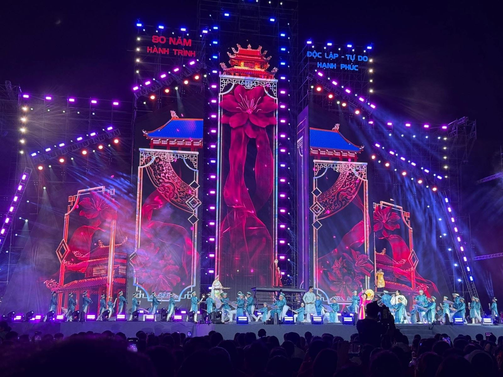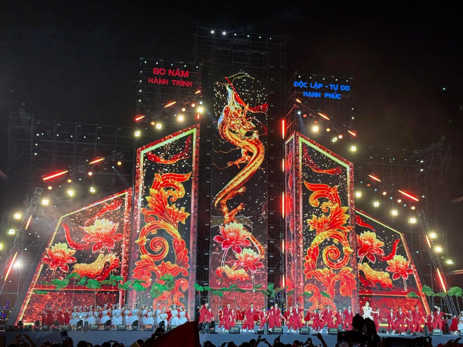 Điểm nhấn ấn tượng của chương trình chính là sự kết hợp giữa nghệ thuật truyền thống và hiện đại, giữa âm nhạc, ánh sáng, hình ảnh sân khấu và công nghệ trình chiếu tiên tiến. Các đạo diễn, nhạc sĩ, biên đạo và nghệ sĩ đã thổi vào từng tiết mục sự công phu, tâm huyết và sáng tạo. Gần 2.000 diễn viên chuyên và không chuyên, dàn hợp xướng hùng hậu, những nghệ sĩ tên tuổi như NSƯT Đăng Dương, NSND Thu Huyền, nhóm Oplus, Đông Hùng, Lâm Bảo Ngọc... đã cùng nhau tạo nên một bức tranh nghệ thuật quy mô lớn nhưng vẫn đầy chất thơ. Màn trình diễn dù lượn nghệ thuật mang theo quốc kỳ tung bay giữa bầu trời đêm, kết hợp với pháo hoa rực rỡ, đã khép lại chương trình bằng một khoảnh khắc thăng hoa – nơi cảm xúc vỡ òa trong ánh sáng, âm thanh và niềm tin bất tận vào tương lai.