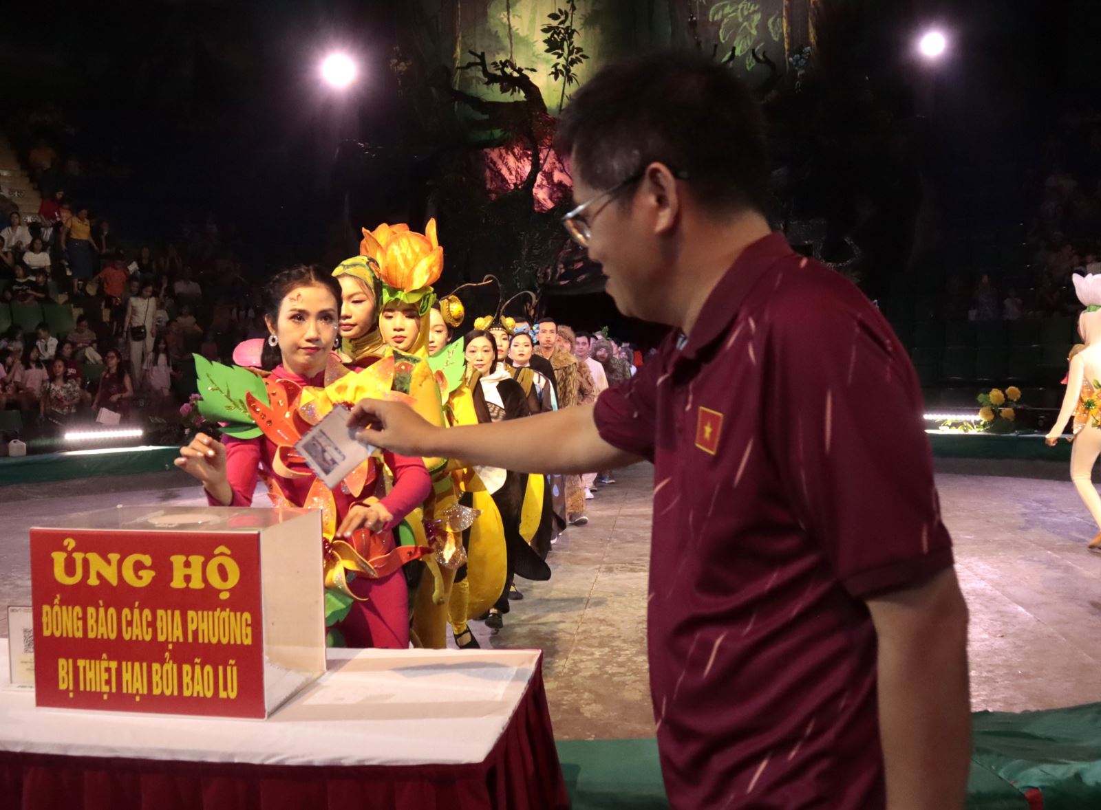 Phát biểu tại đêm diễn, NSND Tống Toàn Thắng - Giám đốc Liên đoàn Xiếc Việt Nam xúc động chia sẻ: “Đồng bào chúng ta đang chịu thiệt hại nặng nề sau những trận bão lũ liên tiếp xảy ra vừa qua. Liên đoàn Xiếc Việt Nam luôn mong muốn được đồng hành, được đóng góp một phần nhỏ bé sức lao động và tình yêu nghề của mình, để lan tỏa tinh thần tương thân tương ái, hướng về đồng bào đang gặp khó khăn”. Việc chung tay ủng hộ đồng bào đã trở thành hoạt động thường niên của Liên đoàn, thể hiện tấm lòng nhân ái của cả tập thể nghệ sĩ. Ngoài việc biểu diễn tại rạp, các nghệ sĩ xiếc cũng thường xuyên có chuyến lưu diễn tại vùng sâu vùng xa, mong đưa nghệ thuật xiếc đến gần hơn tới đông đảo khán giả, nhất là những em nhỏ đang chịu nhiều thiệt thòi.