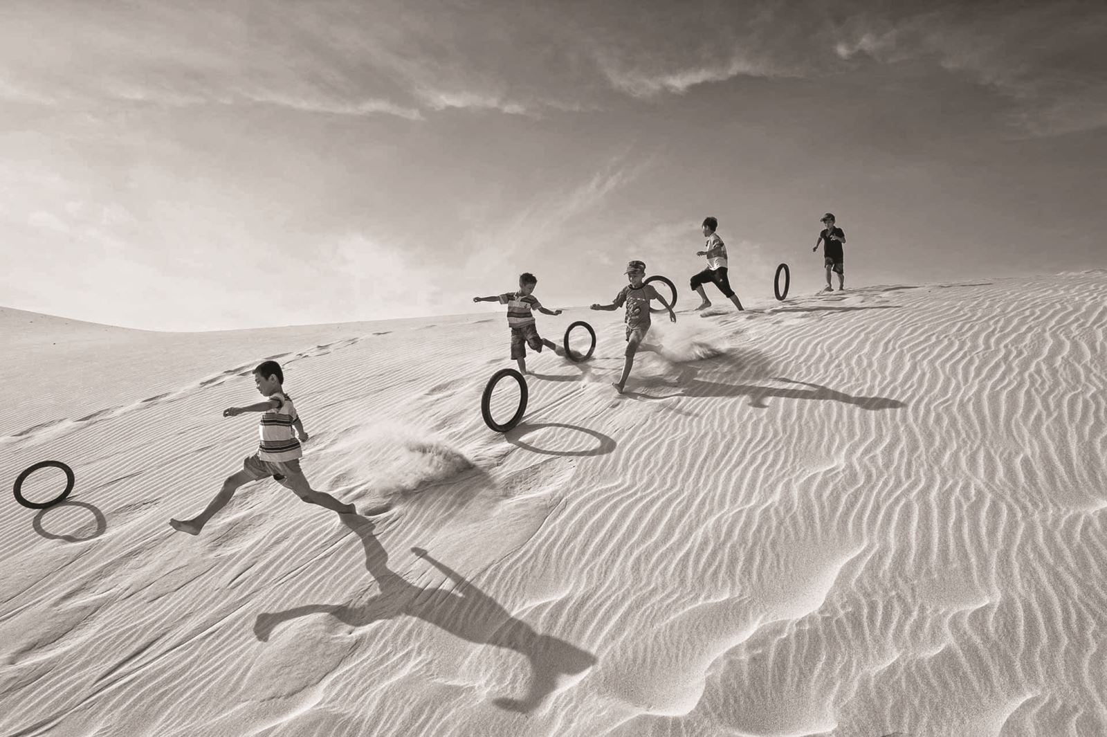 Tác giả Nguyễn Thị Vân là nghệ sĩ nhiếp ảnh không chuyên, nhưng chị đã được giành được giải thưởng cao với tác phẩm Ngày hè (Summer day). Bức ảnh được nghệ sĩ chụp tại Phan Rang với hình các em nhỏ chơi đùa với chiếc bánh xe trên đồi cát. “Cứ chiều chiều, các em học sinh lại đến với đồi cát Nam Cương vui chơi đùa. Không có nhiều trò giải trí, nên đồ chơi của các em chỉ là chiếc bánh xe, tuy nhiên các bạn nhỏ lại rất thích thú và hăng say. Mặc dù rất nắng, nóng, nhưng hình ảnh chơi đùa của các em được đổ bóng xuống nền cát trắng làm tôi cảm thấy rất xúc động, vì thế tôi đã ghi lại khoảnh khắc này. Đã yêu thích nhiếp ảnh từ rất lâu, nhưng đến năm 2014, tôi mới bắt đầu có thời gian dành cho sự đam mê này. Tôi thấy rằng, với mỗi người nghệ sĩ để có được một bức ảnh sống động, chân thật, giàu tính nghệ thuật không phải là điều dễ dàng. Với tác phẩm được ghi nhận này, sẽ là động lực để tôi tiếp tục sáng tác và cống hiến hết mình cho nghệ thuật nhiếp ảnh”.