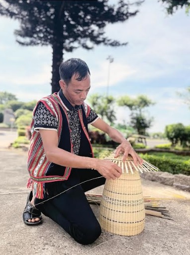 Tôi vô cùng ấn tượng khi được tận mắt chứng kiến chú Hyoi (sinh năm 1973) cặm cụi đan chiếc gùi ốp lưng độc đáo tại khuôn viên Bảo tàng tỉnh. Đây là sản phẩm mà chú tham gia “Cuộc thi nghề đan lát, dệt thổ cẩm và ẩm thực truyền thống tạo ra các sản phẩm phục vụ du lịch trên địa bàn tỉnh” do Sở VHTTDL Gia Lai tổ chức vào cuối tháng 4 vừa rồi.