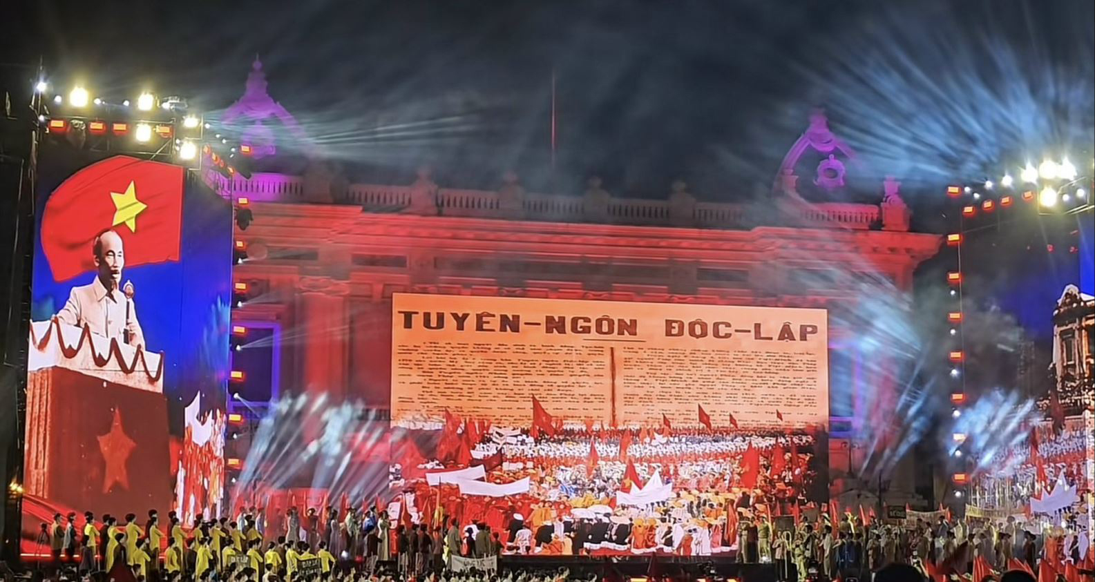 Tối 15-8, tại Quảng trường Cách mạng Tháng Tám (Hà Nội) , Chương trình nghệ thuật đặc biệt mang tên “Hà Nội - Từ mùa Thu lịch sử năm 1945” đã diễn ra trang trọng và xúc động, đúng vào dịp kỷ niệm 80 năm Cách mạng Tháng Tám thành công (19/8/1945–19/8/2025) và Quốc khánh nước Cộng hòa Xã hội Chủ nghĩa Việt Nam (2/9/1945–2/9/2025).