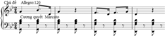 Thủ pháp thêm bè phức điệu kết hợp cả hai tay tạo hiệu quả âm thanh dày dặn và chắc khỏe.