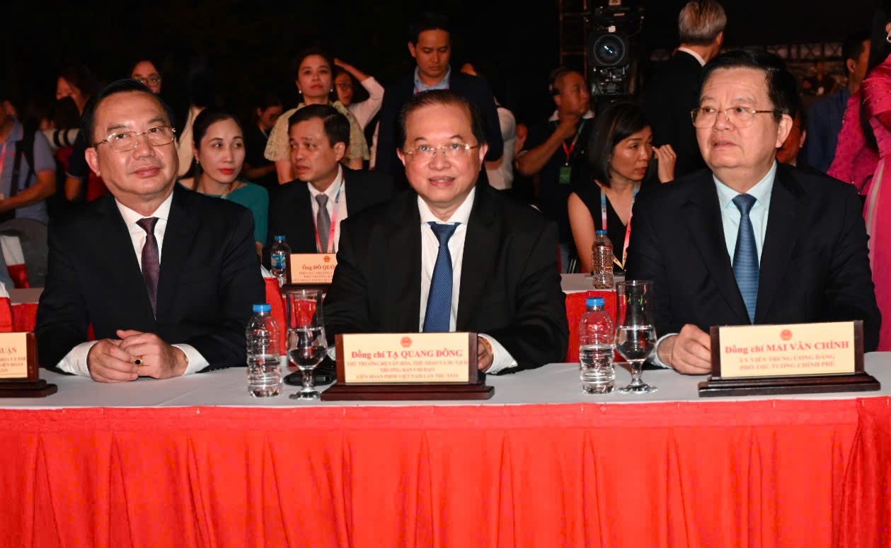 Phó Thủ tướng Mai Văn Chính, Thứ trưởng Bộ VHTTDL Tạ Quang Đông và Giám đốc Sở VHTT TP.HCM Trần Thế Thuận (bên trái) tại Lễ khai mạc