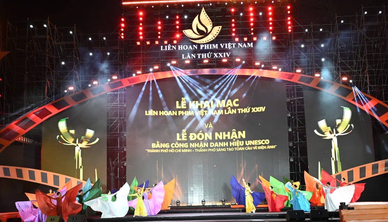 Tối 21-11 trong khuôn viên Hội trường Thống Nhất đã diễn ra Lễ khai mạc Liên hoan Phim Việt Nam lần thứ XXIV và đón nhận bằng công nhận “Thành phố Hồ Chí Minh - Thành phố sáng tạo” của UNESCO trong bầu không khí rực rỡ, sôi động và tràn đầy cảm xúc