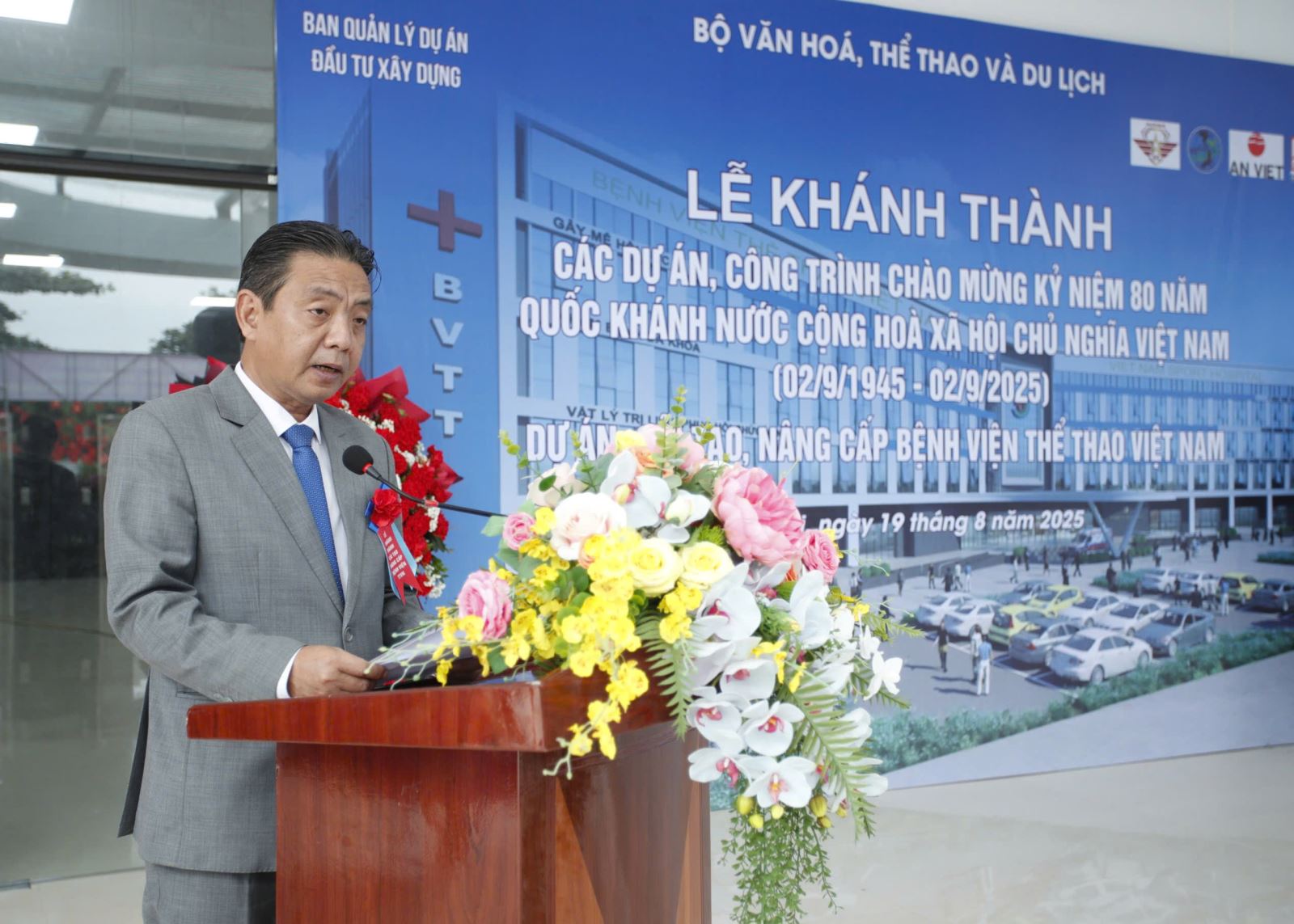 Từ những ngày đầu còn khó khăn, đến nay bệnh viện đã được Đảng, Chính phủ, Bộ VHTTDL quan tâm đầu tư cải tạo toàn diện. Với hệ thống cơ sở vật chất khang trang, hiện đại, đồng bộ đạt tiêu chuẩn quốc tế. Việc khánh thành công trình hôm nay không chỉ là sự kiện có ý nghĩa lớn với riêng bệnh viện, mà còn là biểu tượng cho chủ trương đúng đắn của Đảng, Nhà nước trong việc xây dựng một nền y học thể thao hiện đại, gắn liền với mục tiêu phát triển thể thao thành tích cao đến 2030, tầm nhìn 2045; đáp ứng yêu cầu của thời đại mới, nơi thể thao không chỉ là thành tích, mà còn là biểu tượng của sức mạnh, trí tuệ Việt Nam.