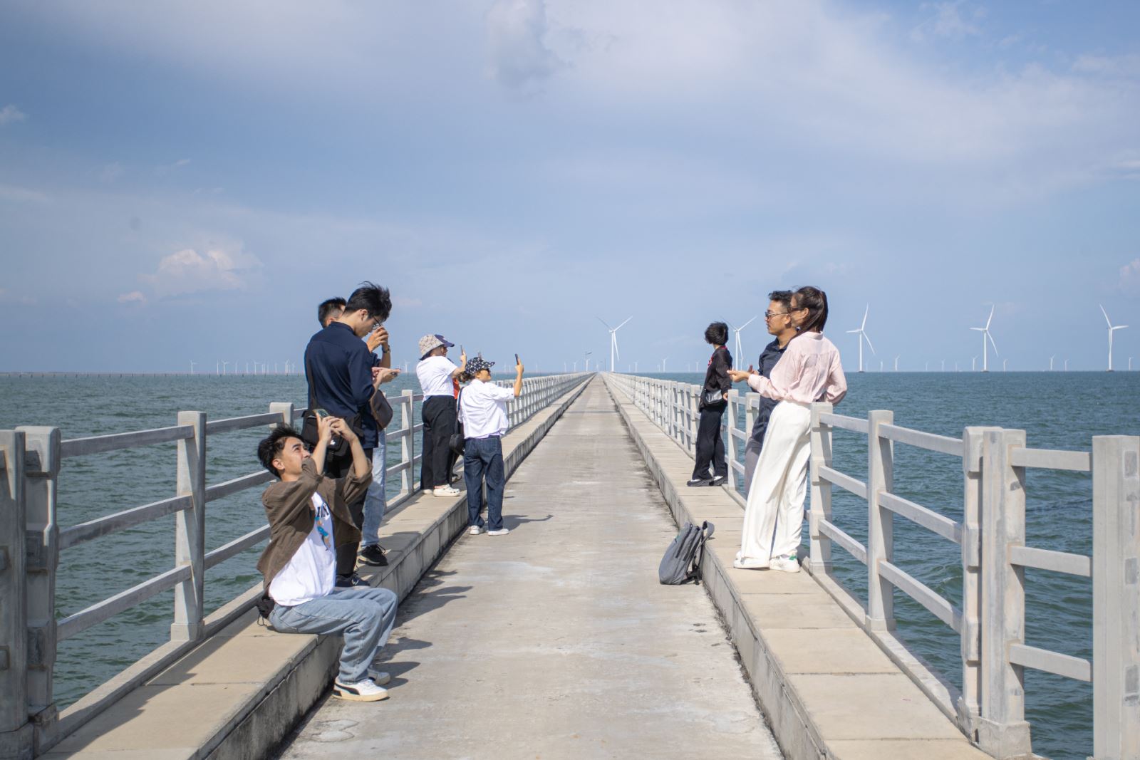 Những buổi sáng sớm, khi sương còn bảng lảng trên mặt biển, du khách có thể đi bộ trên cây cầu gỗ dẫn ra khu turbine, ngắm bình minh lên từ phía chân trời. Khi hoàng hôn buông, ánh nắng vàng pha cam rải lên những cánh quạt khổng lồ, tạo nên khung cảnh huyền ảo như một thước phim điện ảnh. Chính những khoảnh khắc đó đã khiến cánh đồng điện gió Bạc Liêu "gây sốt" trên mạng xã hội, trở thành nguồn cảm hứng cho vô số bức ảnh và video du lịch.