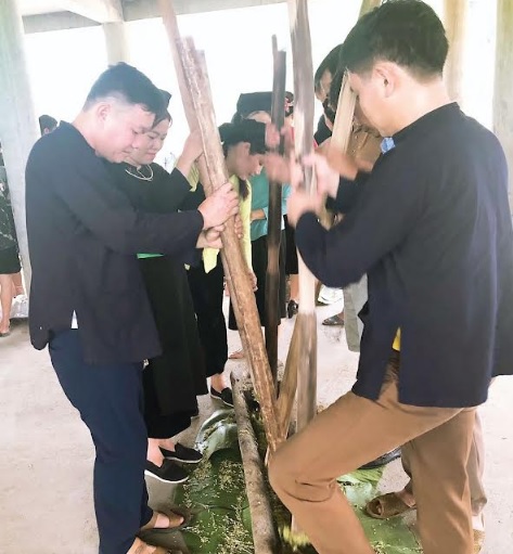 Đồng bào Tày Nghĩa Đô (Lào Cai) cùng nhau giã cốm trong hội cốm mùa Thu