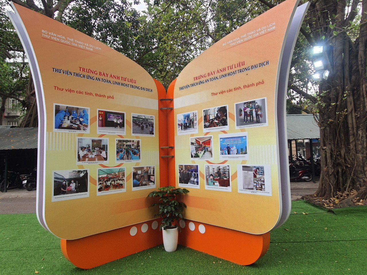 Trưng bày ảnh tư liệu: Thư viện thích ứng an toàn, linh hoạt trong đại dịch. Đó là những hình ảnh về các hoạt động đẩy mạnh công tác thông tin, tuyên truyền, phổ biến các tài liệu về phòng, chống dịch COVID-19 và phát triển kinh tế - xã hội trong trạng thái bình thường mới cho các đối tượng người đọc trong và ngoài thư viện; Ảnh về các hoạt động đổi mới hình thức linh hoạt, phát huy sự sáng tạo, đảm bảo an toàn trong việc tổ chức phục vụ sách, báo của thư viện, đáp ứng nhu cầu tiếp cận thông tin, tri thức và hỗ trợ việc học tập của người dân trong tình hình dịch bệnh diễn biến phức tạp.