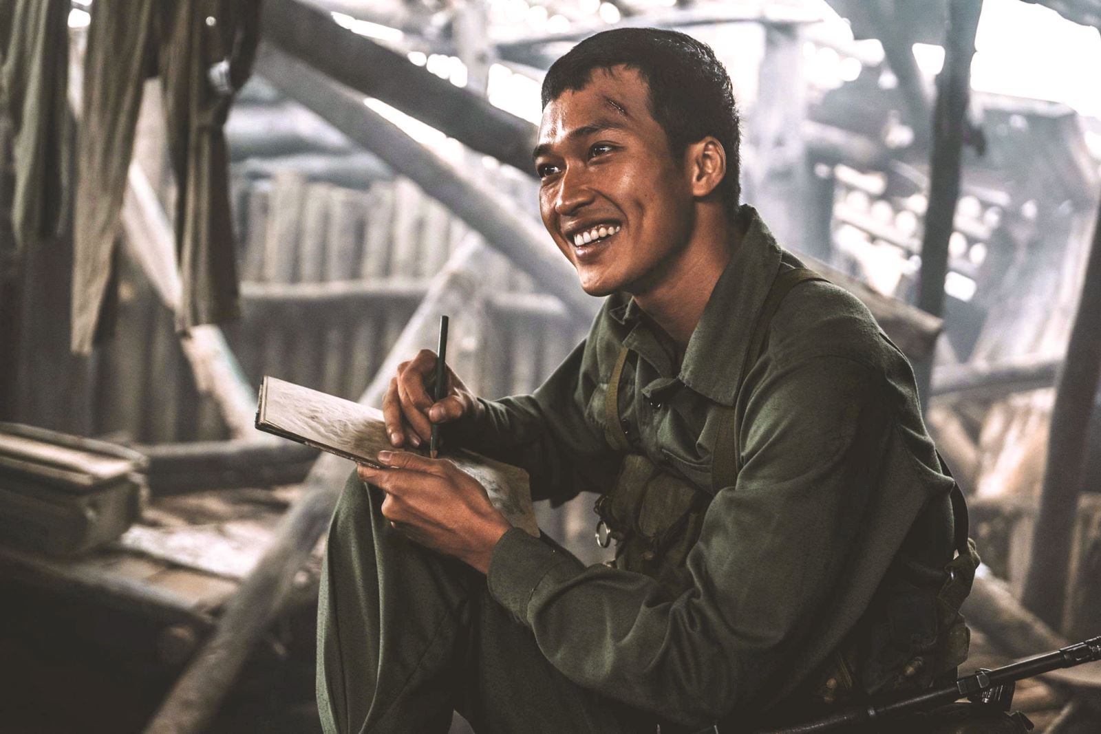 "Giữa chiến hào, nước mắt rơi thay lời tiễn biệt" cảnh trong phim Mưa đỏ - Ảnh: Phạm Tân