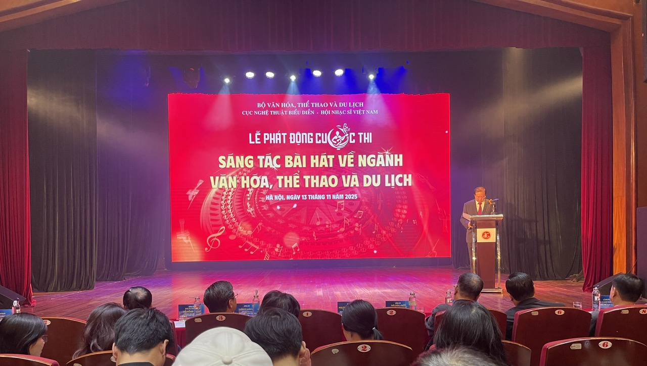 Ban tổ chức Cuộc thi sáng tác bài hát về ngành VHTTDL năm 2025 sẽ nhận tác phẩm dự thi từ ngày 13-11 đến 15-12-2025 qua Cục Nghệ thuật biểu diễn, 32 Nguyễn Thái Học, phường Ba Đình, thành phố Hà Nội.