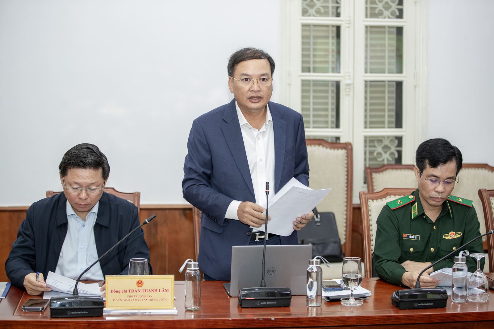 Ông Trần Thanh Lâm, Phó Trưởng Ban Tuyên giáo và Dân vận Trung ương, Phó trưởng Ban chỉ đạo Ngày hội Văn hóa dân tộc Chăm lần thứ VI phát biểu tại cuộc họp