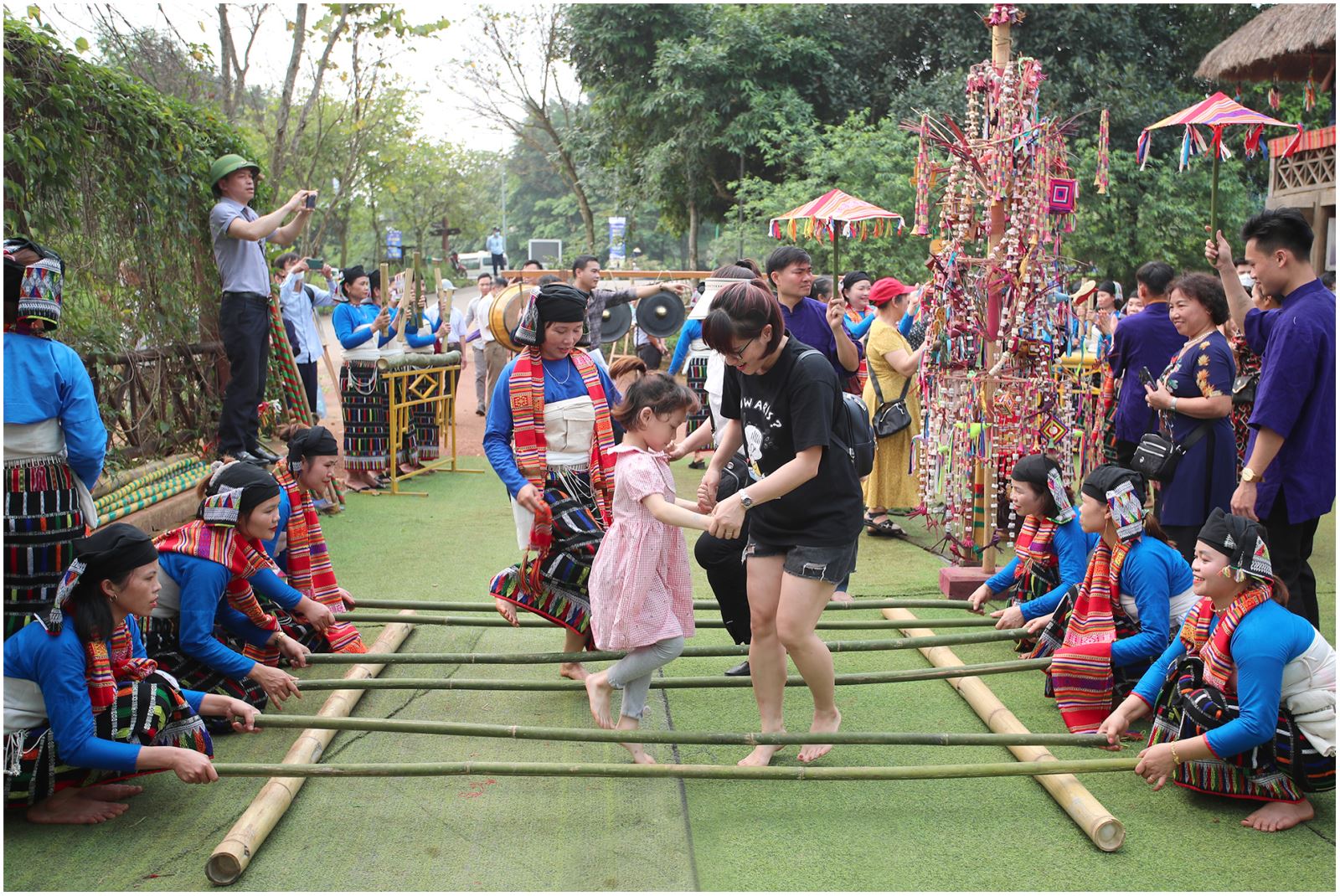 Du khách cùng tham gia múa sạp với đồng bào trong lễ hội
