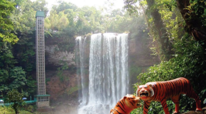 Nếu đi thang máy ở độ cao 50m với lồng kính bảo hộ bao quanh, du khách sẽ được đưa từ đỉnh thác xuống chân thác và ngược lại trong vài phút. Đứng trong thang máy, du khách được ngắm nhìn cận cảnh dòng thác đổ. Nếu đứng dưới chân thác nhìn lên trên đỉnh thác, ta sẽ thấy những hạt nước li ti quyện với ánh sáng mặt trời tạo nên những đường cầu vồng huyền ảo đẹp tuyệt vời.