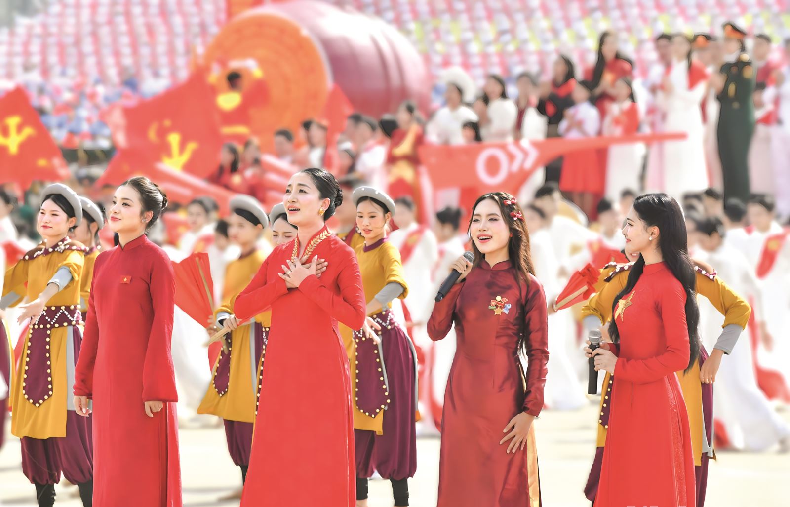 Màn đồng diễn nghệ thuật khép lại Lễ Kỷ niệm 80 năm Cách mạng Tháng Tám thành công (19/8/1945-19/8/2025) và Quốc khánh nước CHNXCN Việt Nam (2/9/1945-2/9/2025) có 80 nghệ sĩ tham gia biểu diễn như NSND Quốc Hưng, Mỹ Tâm, Hòa Minzy, Đức Phúc, Dương Hoàng Yến, Phương Mỹ Chi… cùng hòa giọng liên khúc ca ngợi quê hương, đất nước. Trong đó, ca khúc Thịnh vượng Việt Nam sáng ngời đã gây xúc động mạnh mẽ bởi sự hòa quyện giữa giai điệu truyền thống và ca từ chất chứa tinh thần lịch sử, khơi dậy niềm tự hào dân tộc và khát vọng về một Việt Nam ngày càng hùng cường.
