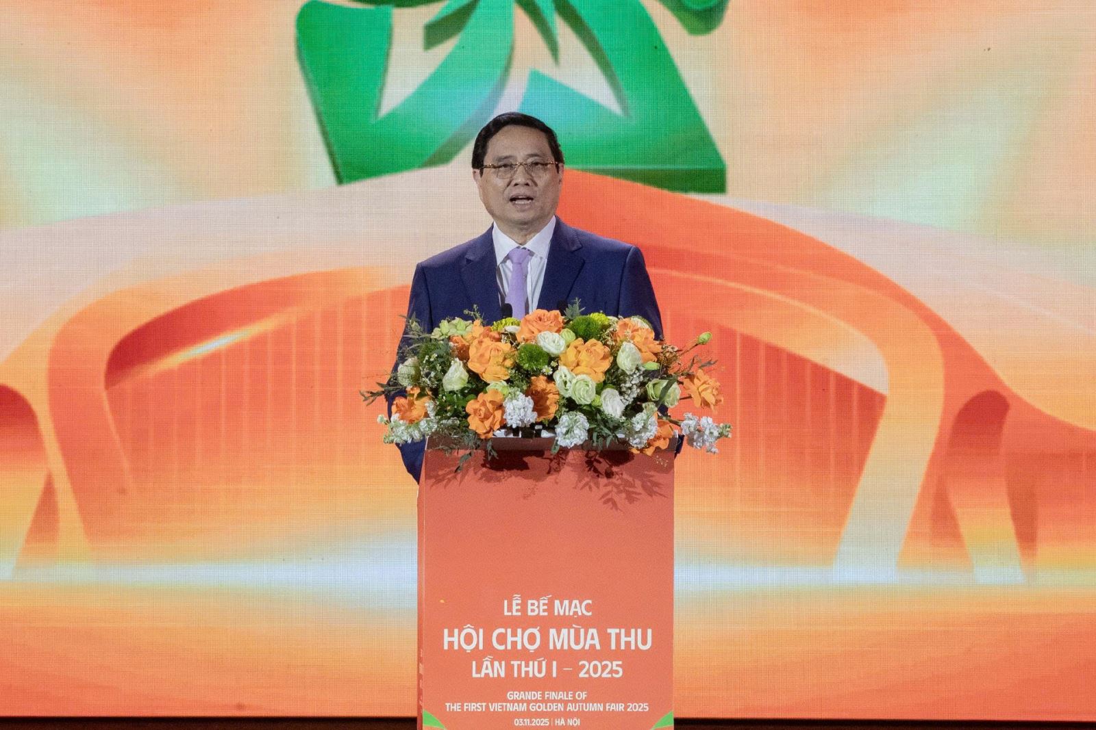 Phát biểu chỉ đạo tại buổi lễ, Thủ tướng Chính phủ Phạm Minh Chính nhấn mạnh: Đúng với chủ đề “Kết nối con người với sản xuất kinh doanh”, Hội chợ Mùa Thu lần thứ nhất năm 2025 là diễn đàn xúc tiến đầu tư, thương mại, sàn giao dịch thực chất, nơi khẳng định con người chính là trung tâm, chủ thể, là động lực, nguồn lực của mọi hoạt động sản xuất kinh doanh và tiêu dùng.